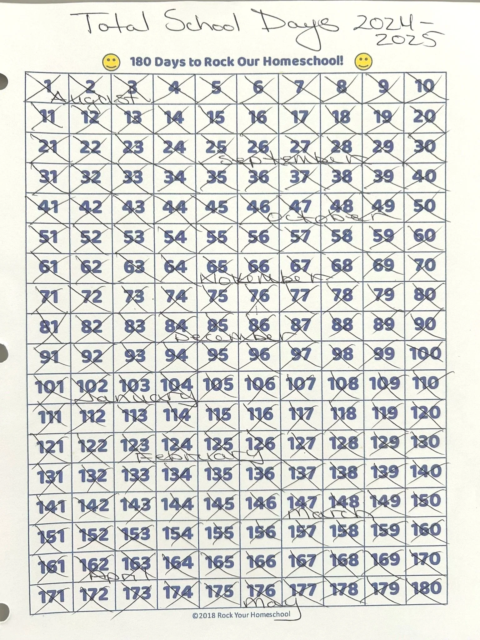 ONE PICTURE of Daily Log or Calendar to show 180 days (900 hours).