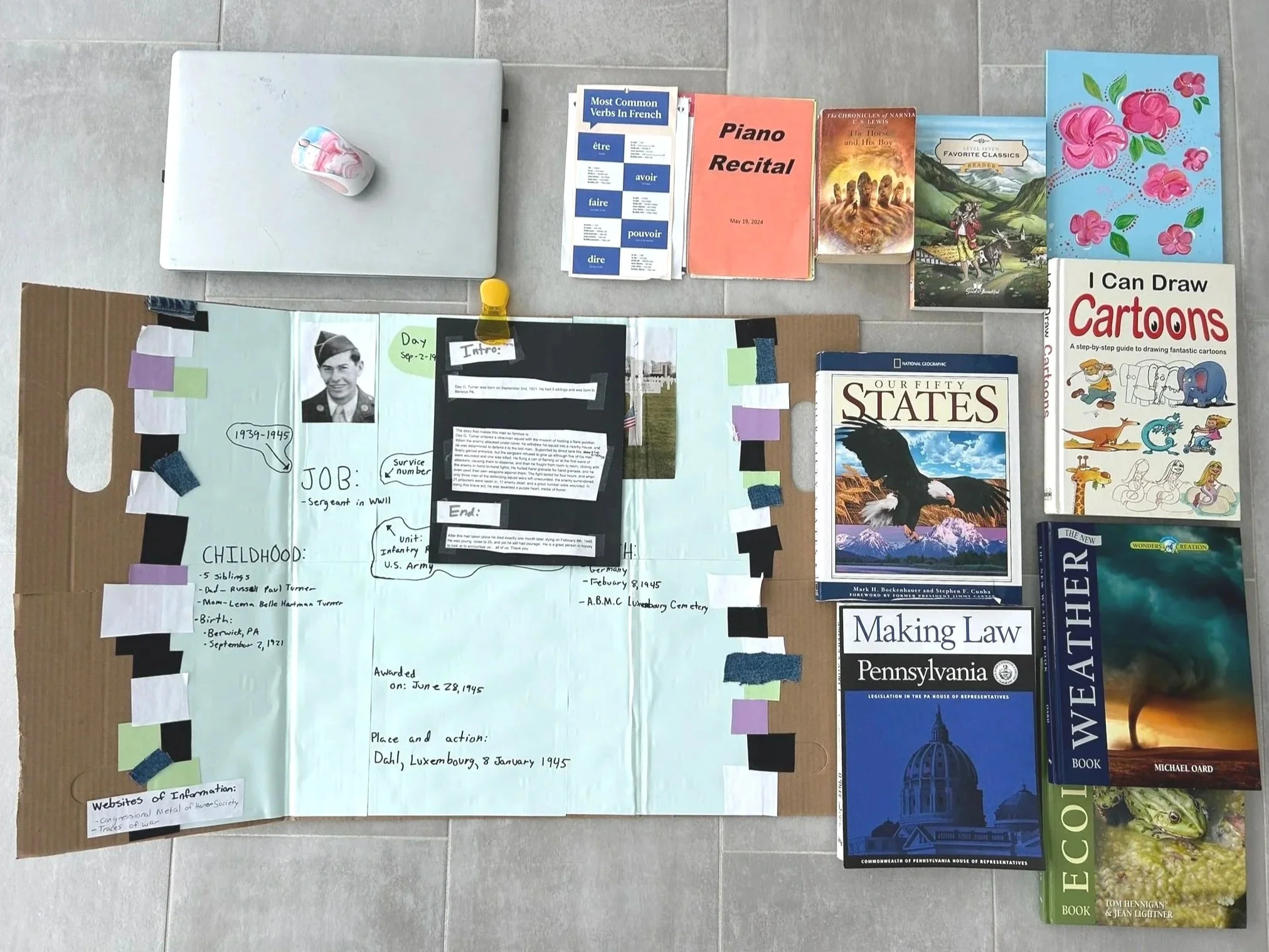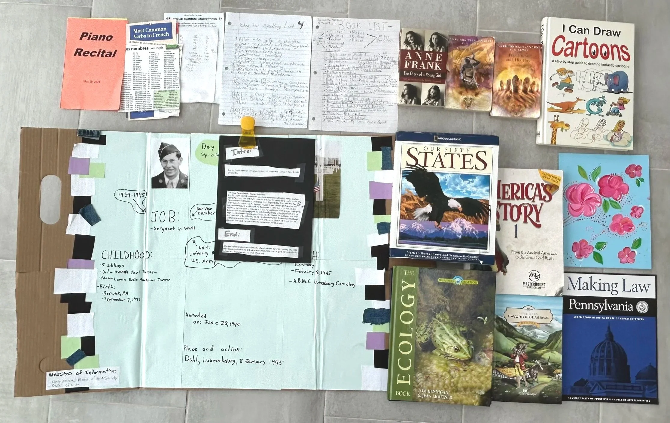 ONE PICTURE of a sample of books, materials, & projects.